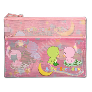 PVC彩印拉鏈網袋是多功能多用途的收納袋。它打破檔袋的沉悶,根據產品的不同尺寸、大小有不同的用途。在辦公室、家庭中可適用於收納各種檔案、票據及文具用品;在生活中可當零錢包、化妝袋使用。本產品採用優質的PVC料製成,一面是採用不透氣性強的網狀織物,另一面印刷各種圖案或是各種廣告、宣傳用語。PVC彩印拉鏈網袋美觀耐用、手感舒適,不易刮傷, 是工作或家居用途的好幫手!